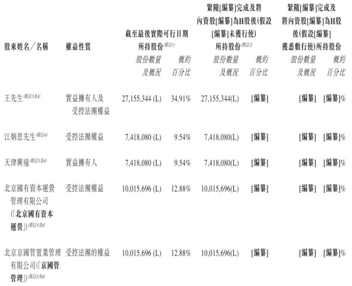 截至最后实际可行日期,17,105,685股股份由王先生实益拥有。王先生为天津兴远的普通合伙人。根据证券及期货条例,王先生被视为拥有天津兴远所持7,418,080股股份权益。天津智创(王先生全资拥有的公司)为天津兴辉的执行合伙人。根据证券及期货条例,王先生被视为拥有天津兴辉所持2,631,579股股份权益。