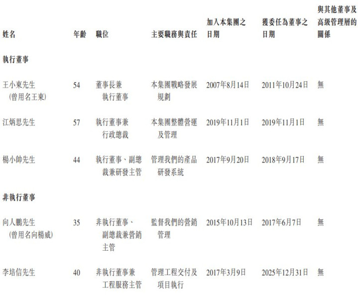 董事会为公司的主要决策机构,负责制定基本的业务策略及政策,以管理及经营公司业务,并监督其执行情况。IPO后,董事会将由11名董事组成,包括3名执行董事、4名非执行董事及4名独立非执行董事。公司的所有执行董事、非执行董事及独立非执行董事初始任期为三年,可于重选及╱或续聘后续期。